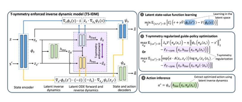 近年来,离线强化学习已取得显著进展。然而,现有方法通常依赖大量训练数据才能获得理想性能,且由于采用基于数据的保守正则化策略,其分布外泛化能力有限。这在许多实际应用场景中严重制约了离线强化学习的实用性,因为现实场景中可用数据往往十分稀缺。本研究提出TELS算法,这是一种具备极高样本效率的离线强化学习方法,能够在由动力学系统的时间反演对称性调控的紧凑潜在空间中实现状态拼接。具体而言,我们引入具有时间反演对称性的逆动力学模型,通过该模型可推导出具有良好调控特性的潜在状态表征,从而极大促进分布外泛化能力。随后,引导策略可完全在潜在空间中被学习,以优化奖励最大化的下一状态,这规避了多数离线强化学习方法中采用的保守动作级行为正则化。最后,优化的动作可通过已学习的TS-IDM模型与引导策略生成的优化潜在状态共同推导得出。我们在D4RL基准测试任务和真实工业控制测试环境中进行了全面实验,结果表明TELS在样本效率和分布外泛化性能上均表现优异,在一系列具有挑战性的小样本任务中显著超越现有离线强化学习方法。