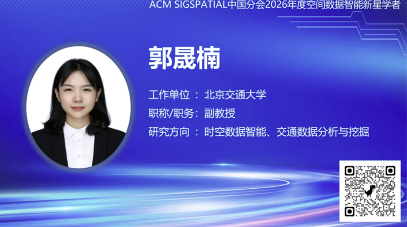 近日,ACM SIGSPATIAL中国分会公布了2026年度“空间数据智能新星学者”评选结果,我所郭晟楠老师榜上有名。