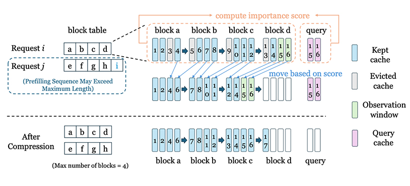 随着推理逐渐成为大型语言模型(LLM)的生成范式,解码阶段由 KV 缓存(KV cache)引起的内存瓶颈已成为限制高并发服务的关键因素。尽管现有的 KV 缓存淘汰(eviction)方法能够在一定程度上解决内存问题,但其中大多数在工业级应用中并不实用。本文介绍了一种名为 Compressed PagedAttention 的方法,该方法将逐 Token(token-wise)的 KV 缓存淘汰机制与 PagedAttention 结合了起来。研究团队提出了一套综合的调度策略,并为 Compressed PagedAttention 提供了前缀缓存(prefix caching)和异步压缩的支持。基于此,我们开发了一款高并发的 LLM 推理引擎——Zipage。在大规模数学推理任务中,Zipage 达到了完整 KV(Full KV)推理引擎约 95% 的性能,同时实现了超过 2.1 倍的速度提升。